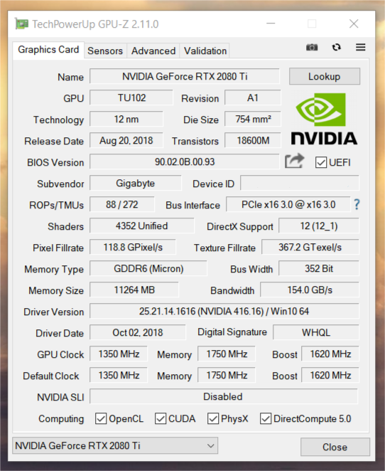 RTX 2080 Ti GPU-Z