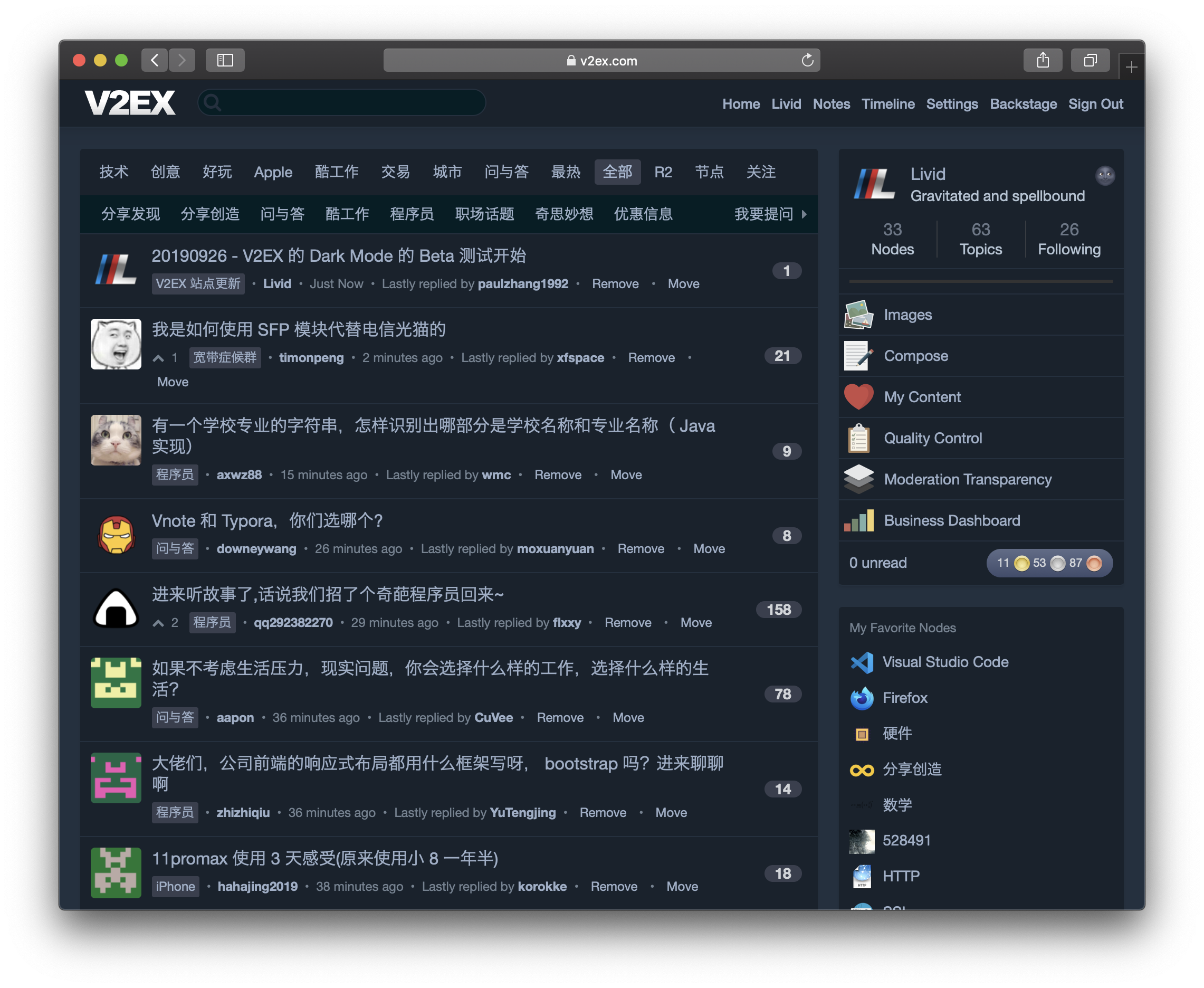 V2EX Dark Mode 20190926