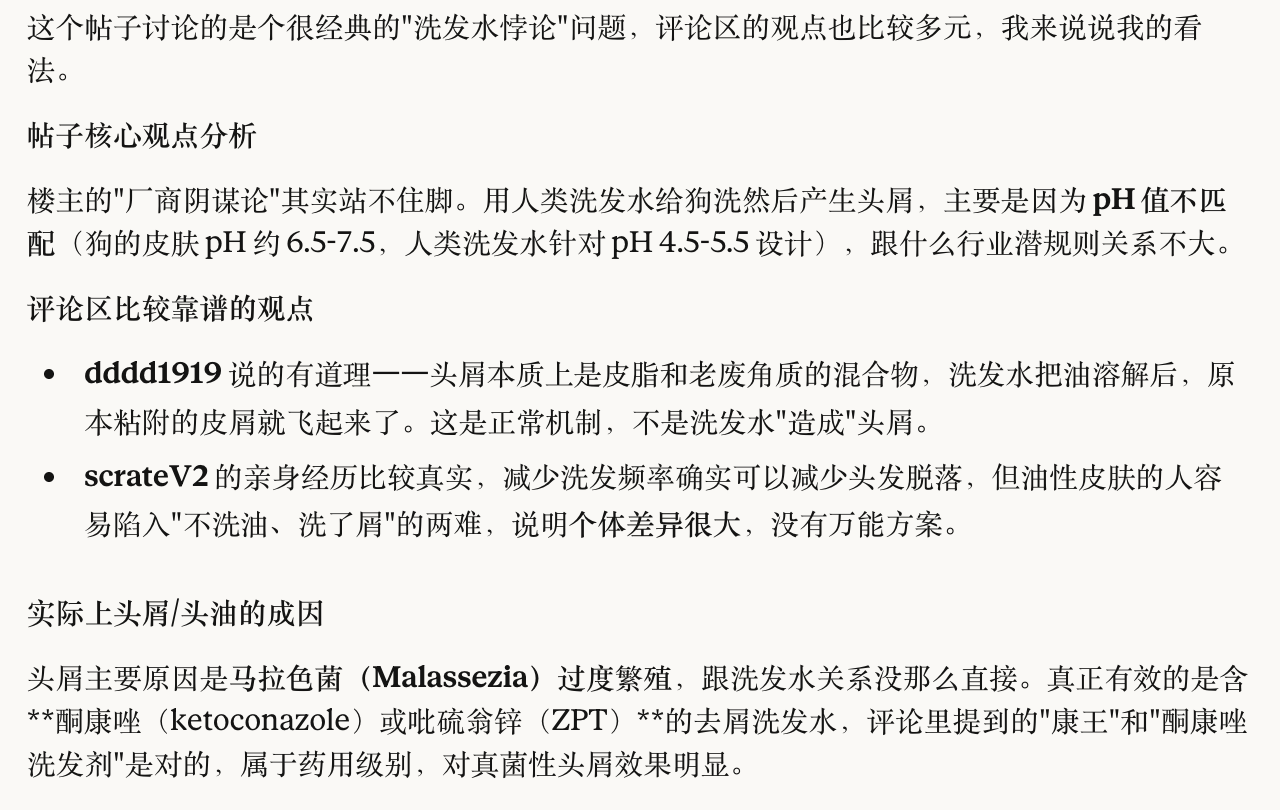 @Croow 我试过,就是平实洗手的肥皂,洗完头发打绺发涩。同时我在网上查过资料,古人洗头的办法,AI 给的解释是也会影响头皮的酸碱性,不建议多用,一周一次就行。
